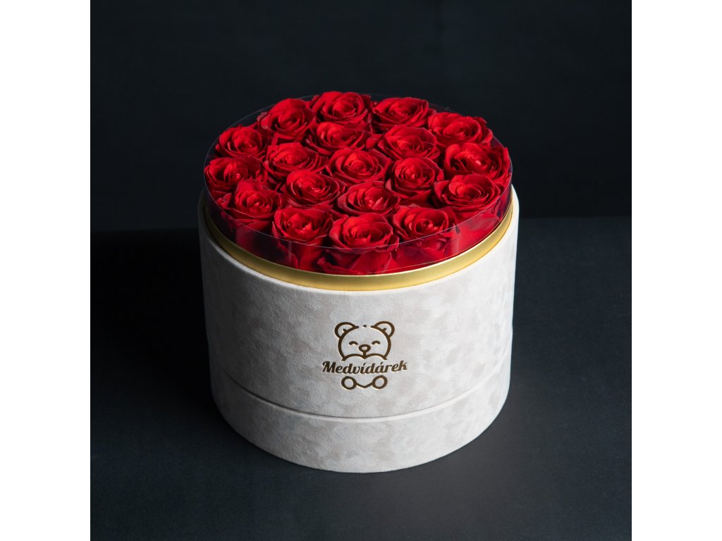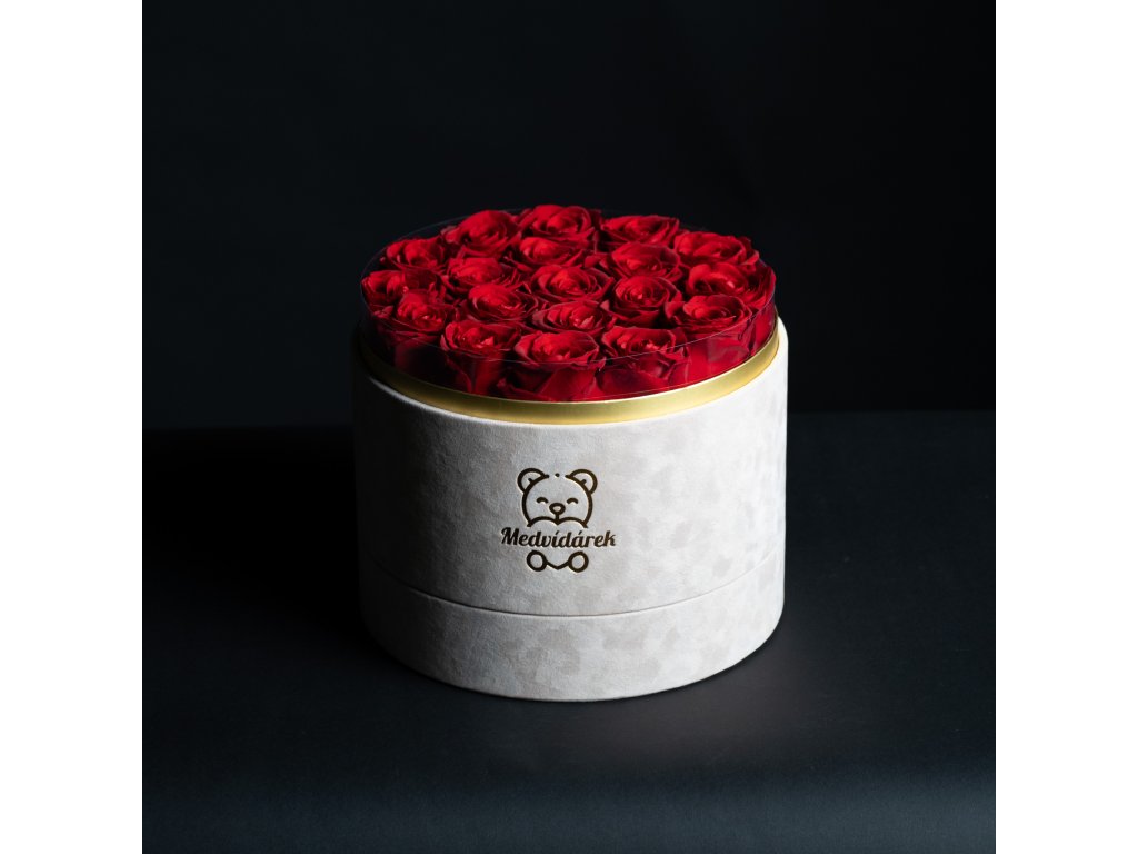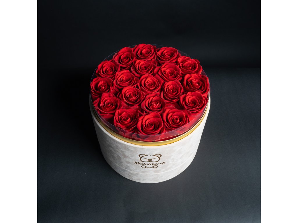 Když chcete udělat dojem, na který se nezapomíná. Náš největší box s devatenácti stabilizovanými růžemi je definicí luxusu a hojnosti. Hustě vázané květy vytvářejí nádhernou sametovou plochu, která láká k doteku. Tento box není jen dárkem, je to designový doplněk, který okamžitě promění atmosféru v místnosti. Pro ty, kteří se nespokojí s málem a chtějí darovat to nejlepší z nabídky Medvídárek.
