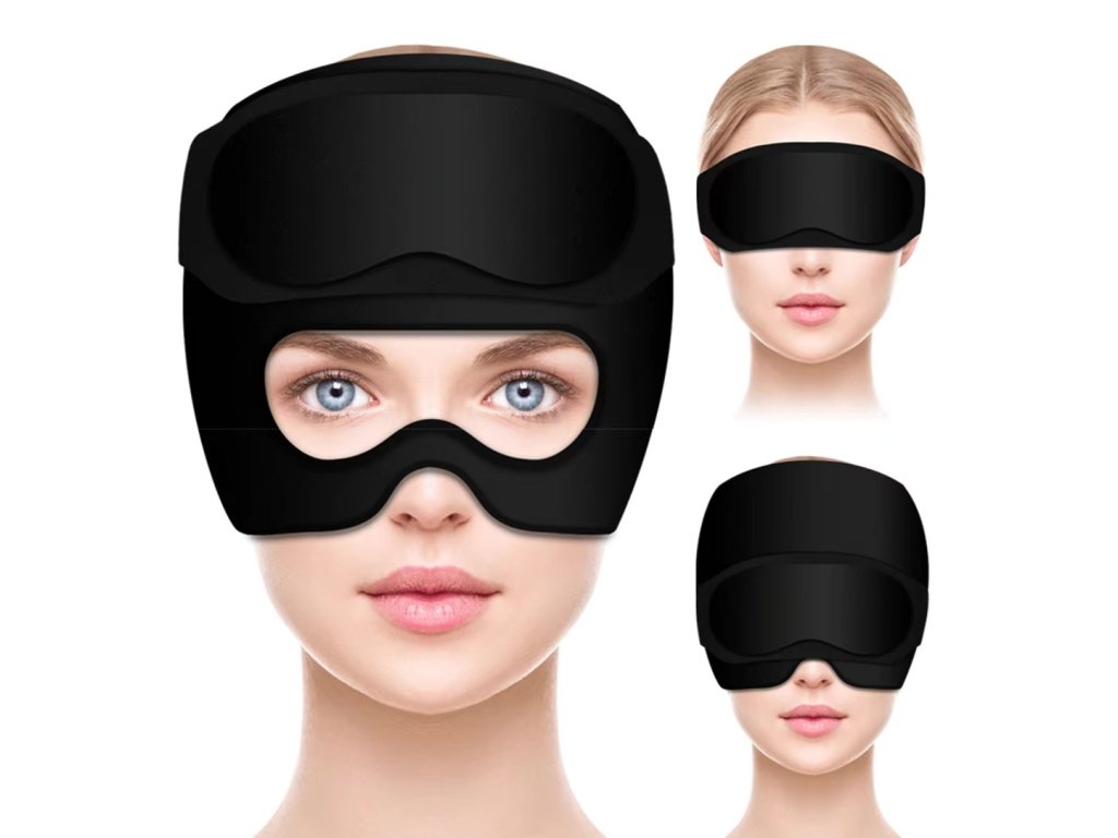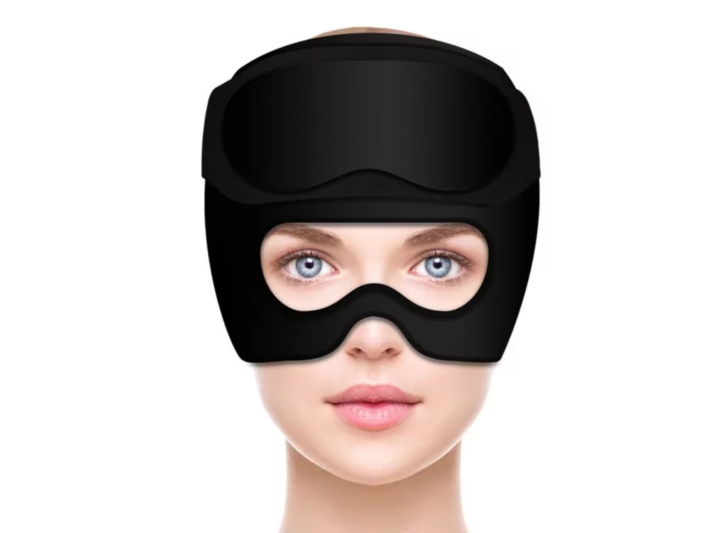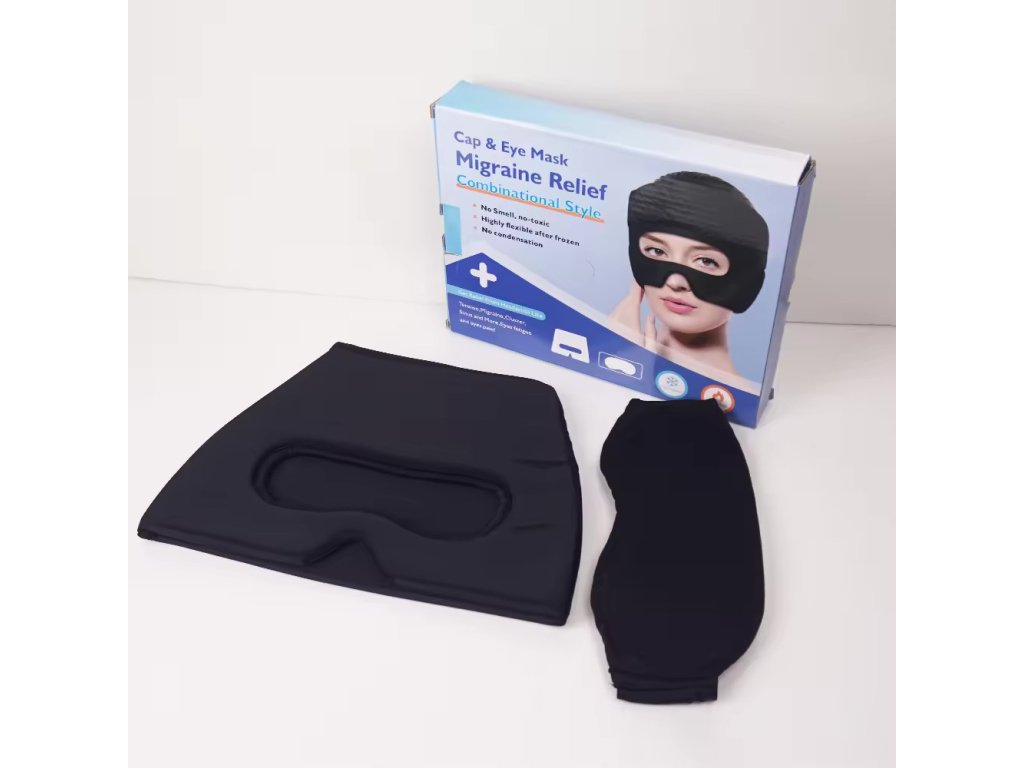 Migraine-3 je 360° chladiaca alebo hrejivá gélová maska s otvorom pre oči na zmiernenie bolesti hlavy alebo migrény.