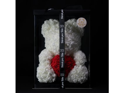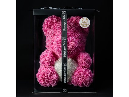 MEDVÍDÁREK králik z ruží vo veľkosti 40 cm. Plyšový medvedík z ruží je ideálny darček pre ženu na Valentína, narodeniny alebo ako svadobná dekorácia.